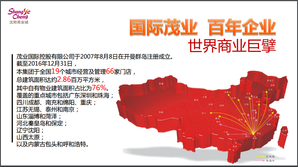 鐘總在向與會嘉賓介紹茂業(yè)國際旗下零售、地產(chǎn)、酒店、物業(yè)4大支柱產(chǎn)業(yè),全國五大區(qū)域30個中心城市戰(zhàn)略布局的同時,重點推介了以沈陽商業(yè)城為代表的沈陽區(qū)域5家重點商業(yè)及地產(chǎn)項目。